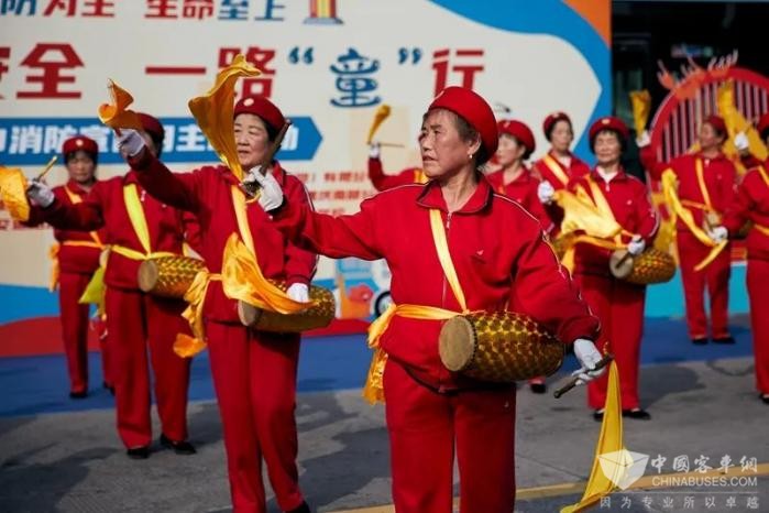 消防事关你我他,安全系着千万家;厨房用火是大事,时时刻刻要警惕……”活动现场,伴随着“老妈妈防火队”节奏感满满的腰鼓表演,“119”消防宣传月启动仪式暨“119”路消防主题公交车“消防安全 一路童行”直播活动正式拉开帷幕,两江新区云锦小学校的同学们化身“消防宣传小志愿者”和“特邀体验官”,为大家带来了一段活力无限的《消防操》并登上主题公交车一起体验此次专属之旅。
