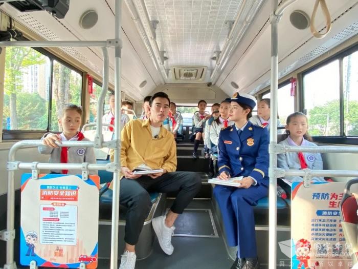 蓝姐姐以及主持人带领小志愿者们坐上119主题公交,沿途学习消防安全知识、讨论重庆特色美食和景点、观看消防器材操作、体验消防装备穿戴、模拟油锅起火扑救,参与消防知识小组PK,全程通过抖音进行直播,并与线上网友进行互动问答,不仅欣赏到了重庆的特色美景,还学到了实用的消防小技能。