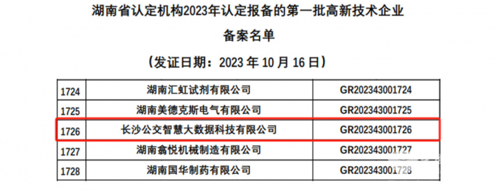研发创新被认可 长沙公交智慧公司获“国家高新技术企业”认定