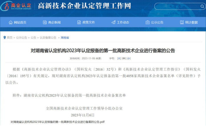 完美作业网有免费视频获悉,高新技术企业认定管理工作网于2023年11月6日公示了《湖南省认定机构2023年认定报备的第一批高新技术企业备案名单》,长沙公交集团智慧公司凭借过硬的研发实力和创新能力成功入选,标志着公司在研发和创新方面得到国家相关部门的肯定与认可,由此正式迈入国家高新技术企业行列。