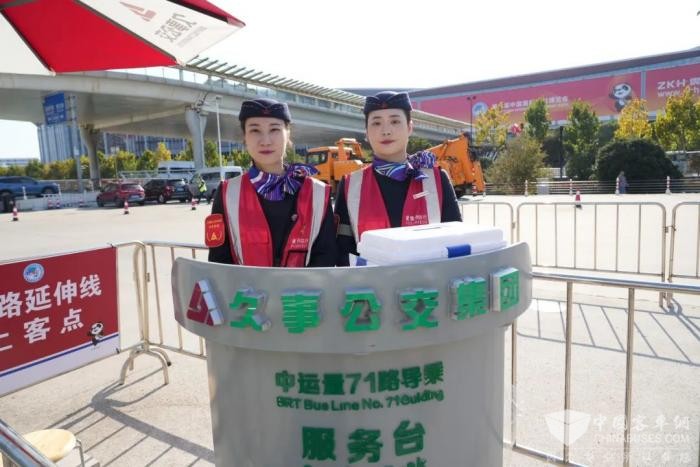 久事公交选派责任心强、技术水平高、服务信誉好、有前五届丰富经验的党员和骨干优秀驾驶员共283名参与本届进博会交通保障工作。进博会期间,久事公交累计投入保障用车906辆次,累计发车2650只班次(其中应急22只班次),累计运送9312人次。121路延伸线共投入108辆次,累计运送693人次。71路区间延伸线共投入168辆次,累计运送3314人次。