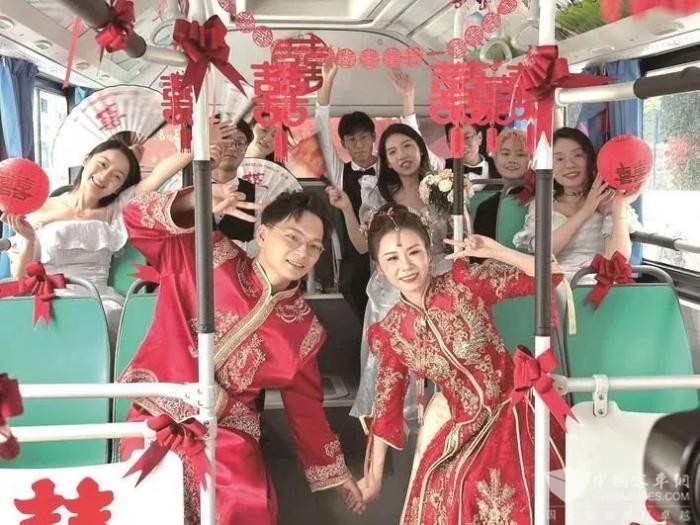 新娘说,一辆公交车能拉30多人,亲朋好友都可以坐在一起,一起唱歌,一路欢笑地去婚礼现场,沿途还吸引了很多人的目光,既喜庆、时尚,又低碳环保。