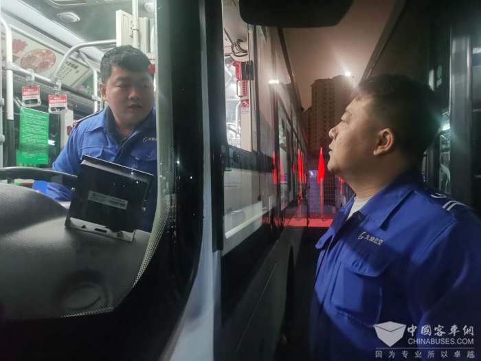 驾驶员每天要求提前30分钟到岗,做好出车前的例保检查工作,重点对电量、刹车、方向、灯光、雨刷器、喇叭、暖风、轮胎等部位进行检查,为市民出行保驾护航。