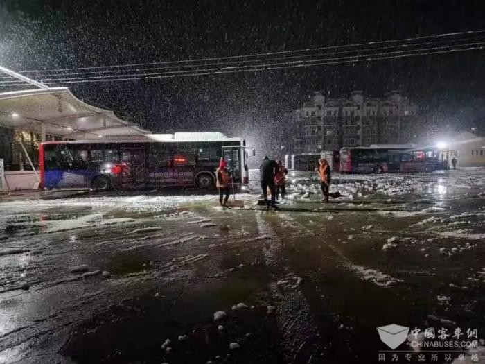 恶劣天气,路队长、机务人员彻夜值班值守,驾驶员、路队后勤人员及管理人员提前到岗,清理场站及车辆积雪,做好岗前叮嘱,检查车辆状态,配齐防滑沙、铁锹等应急物资,确保所有营运车辆技术状况良好。