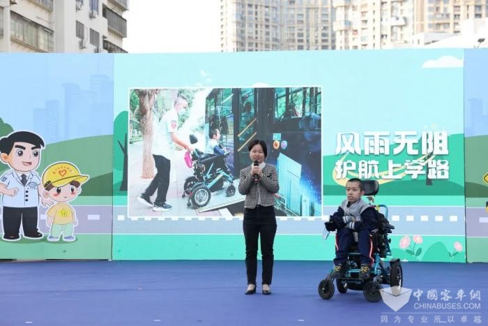 “柏乐,你好!”主持人一声亲切的问候,就如每一个上学的日子里,公交驾驶员与他的对话。15岁的“轮椅少年”陈柏乐熟练操控着电动轮椅,“丝滑”地上了舞台。他身患罕见病,依靠轮椅行动,却坚韧勇敢、热爱学习。今年,“学霸”柏乐如愿考上了双十中学高中部。从槟榔中学到双十中学,12路到118路,三任公交司机,四年爱心接力,守护少年的上学路。柏乐妈妈说,因为有了无障碍公交车,还有驾驶员每次下车帮忙推轮椅,柏乐才能够独立出行,给了他莫大的信心。而柏乐则分享了一个小故事,“中考前,12路的驾驶员叔叔向我保证,如果我考上双十,这台无障碍公交车还能继续陪我上学。”果然,闽D07559D公交车如今已调整到118线路上,与柏乐开启了 “每周之约”。