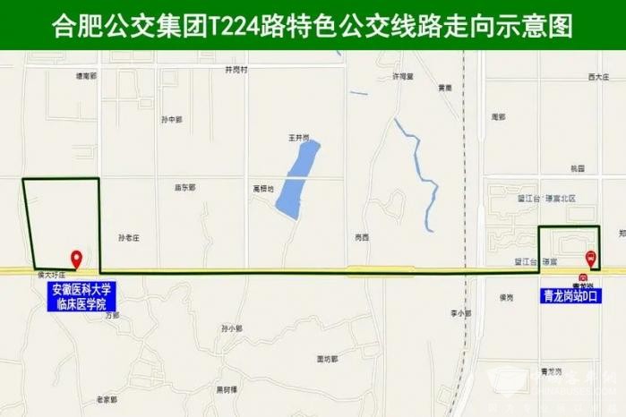 返程时,T224路特色公交停靠青龙岗、安医大临床医学院、安医大临床医学院北、安医大临床医学院东。