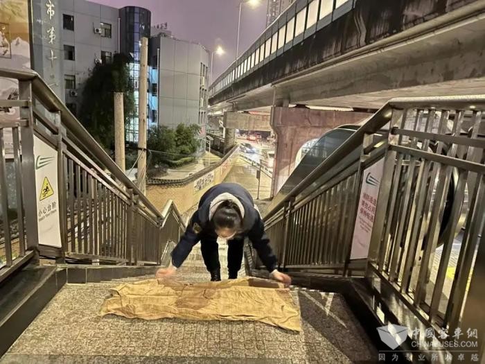 自2023年12月16日凌晨贵阳市出现零下气温以来,贵阳公交立即启动应急预案,组织工作人员在重点时段不间断巡查、对全市范围内的公交线路进行撒盐除冰。从深夜到破晓,不放过任何一个细节,站台上下台阶、楼梯扶手、室外站厅楼梯、地面等都经过仔细的检查,针对容易出现结冰的路段和站厅、站台出入口,特别是海拔较高和桥梁等易产生凝冻的路段,加大撒盐力度或采取必要的防冻防滑措施,确保市民安全出行。