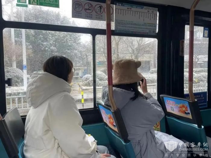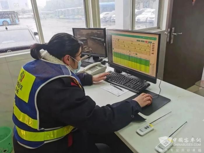 智能调度人员根据实时路况,充分利用GPS智能监控系统,向所有运行车辆语音播放“减速慢行、文明驾驶”等信息,针对雪后客流密集的特点,积极增加运力配置,在早晚高峰时段,适时增加趟次、缩短发车间距,全力保障市民顺畅出行。