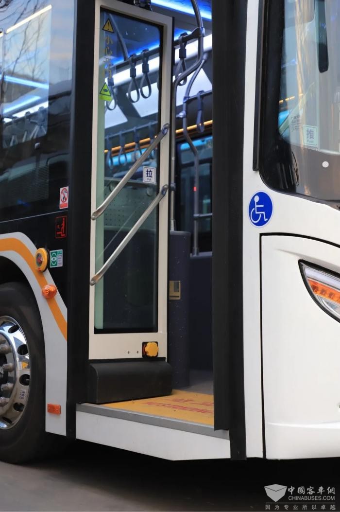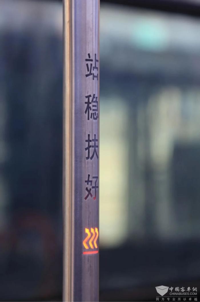 此次购置的100台新能源公交车全部加装扶手加热装置,车内全面开启空调暖风,配备空气净化消杀设备,USB充电口,无障碍踏步,为乘客提供更舒适的乘车环境;为配合“响应式停靠”运营模式,缩短市民出行时间,新车在门铃设置上也有了新变化,全车共设有11处门铃,分别在中门前后、乘客座椅旁增设8处门铃按钮,无障碍区域增添1处特殊提示音门铃按钮,全方位方便乘客按门铃下车,提高公交服务质量和乘客出行效率。