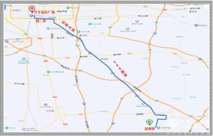 2.运营路径:途经308国道、石桥大街、石塔路、柏林大街、永通路、308国道、建华南大街、南二环、胜利大街、火车站东广场。