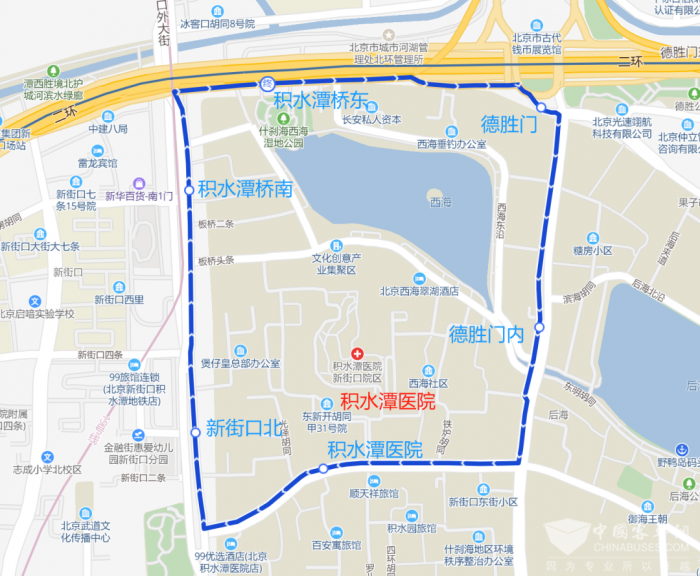 沿途设站:积水潭桥东、德胜门、德胜门内、积水潭医院、新街口北、积水潭桥南、积水潭桥东。