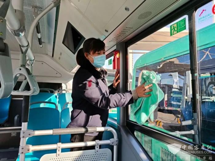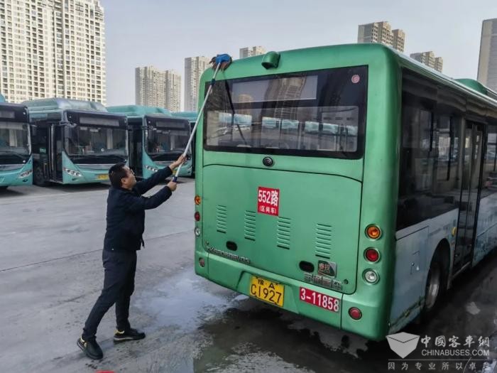 在宇通路公交站院内,277路调度员曹欢带领线路的驾驶员们认真擦拭每一块玻璃,“公交车作为城市的移动名片,车辆环境卫生关乎乘客乘坐体验……。在日常卫生清洁时,我们一定要注重车厢卫生细节,时刻以“五净一亮”为标尺,全力以赴,确保车厢环境干净整洁。”大家分工合作,有的人清理车厢内的座位和地板,有的人负责擦拭车窗和把手,还有的人检查车载设备,灭火器。