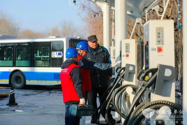 国家电网首都电力(海淀)共产党员服务队队员为电动公交场站提供用电服务保障工作