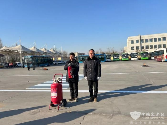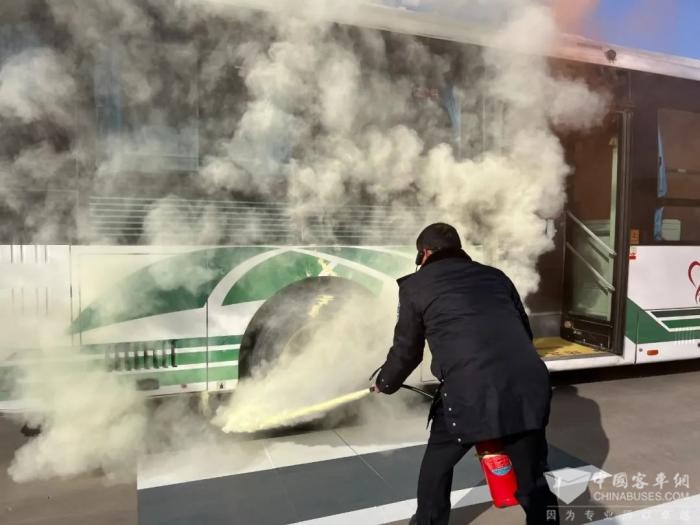 带乘客安全疏散后,驾驶员用车载灭火器进行初期灭火向“119”请求救援并向分公司报告。消防人员到达现场灭火。分公司管理人员到达现场进行拍照取证,进行现场后续处置。