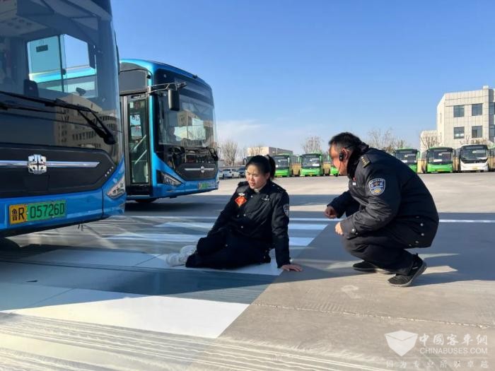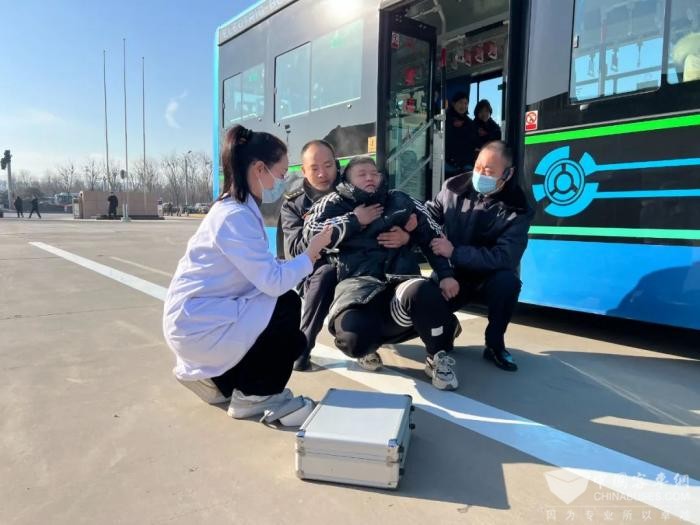 26路线路长李宏志向实习驾驶员讲解安全行车注意事项,老人、儿童乘客乘车特点及安全防范措施、乘客被异物卡住紧急抢救等。讲解完毕后,带领驾驶员进行演练。