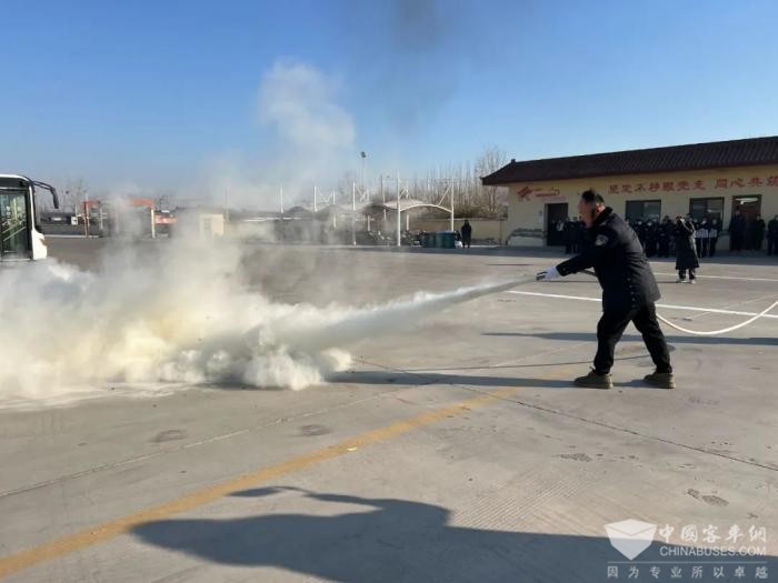 演练共分为灭火器使用讲解及现场灭火、乘客干扰驾驶员应急演练、乘客突发危情紧急抢救演练、“三品”检查与车辆自燃应急演练、道路交通事故应急处置演练五项内容。