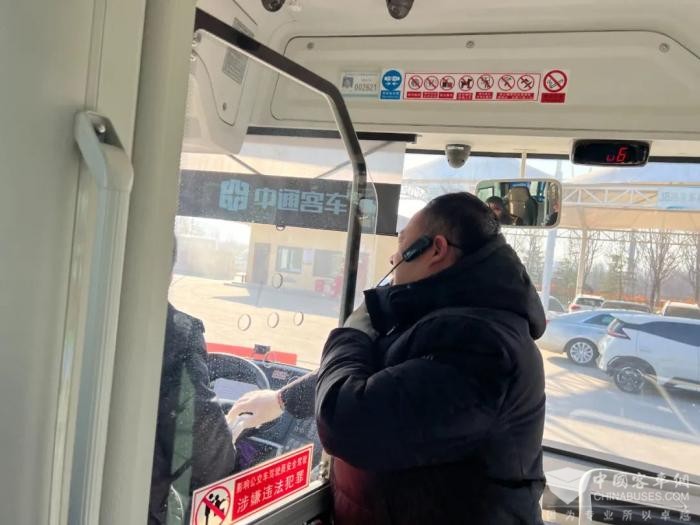 公交车运营过程中,车内有中小学生嬉戏打闹,驾驶员给予提醒,及时制止。