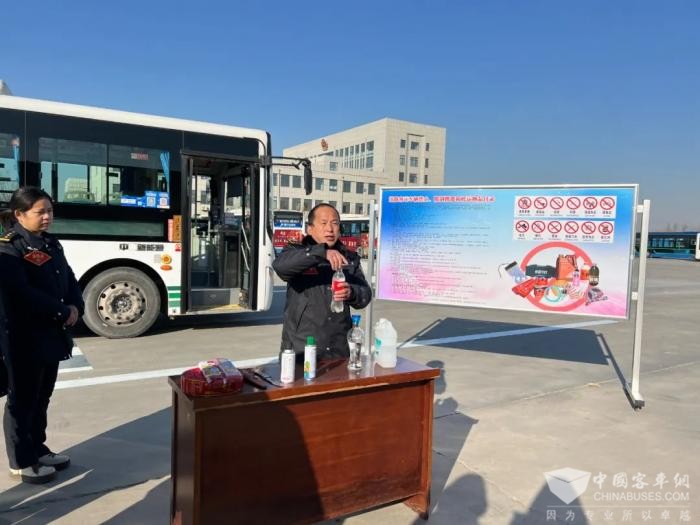 6路线路长侯保建向驾驶员讲解“三品”检查要点及车辆自燃或着火应急处置要领。讲解结束后,带领驾驶员进行演练。