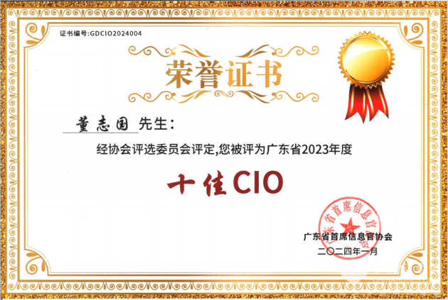 集团首席数据执行官董志国获得了“2023年度十佳CIO”。