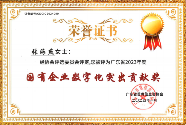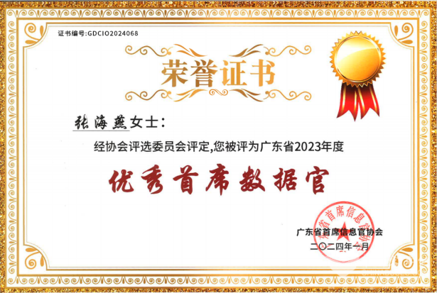 广州公交集团凭借深耕数字化转型多年的成效,集团副总经理、首席数据官、总法律顾问张海燕获得了“2023年度国有企业数字化突出贡献奖”“2023年度优秀首席数据官(CDO)”。