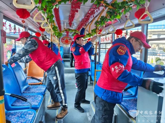 132.229.253路党支部全体党员及积极分子兵分两路,清洁运营车辆、清理场区及始发站候车廊卫生,为乘客提供整洁舒适的乘车环境。