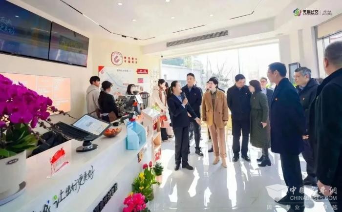 华向阳、方华、刘艳红、张欣、程伟、王锋为无锡公交集团巴士驿站首站揭幕,共同见证巴士驿站首站正式开业。揭幕仪式后,各位领导前往巴士驿站内参观。