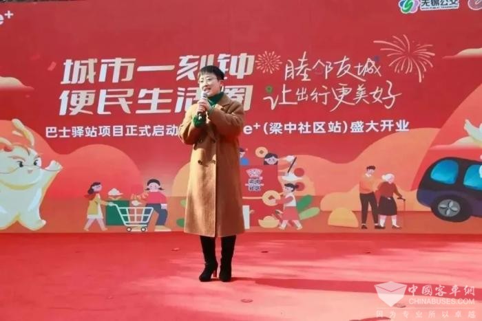 方伟致辞并表示,近年来,无锡公交集团以服务城市经济发展和市民美好生活出行为己任,精心构建具有公交服务特色的多元化服务体系。巴士驿站首站(梁中站)是集团公司在探索公交服务新模式的又一次重要尝试,标志着集团公司在构建资源共享、优势互补、打造公共服务业态供给新格局方面迈出了重要一步。未来,集团公司将继续坚守人民立场,探索研发“公交+”场景化的公共交通服务产品,为市民创造更美好的出行体验,为城市美好生活贡献公交力量。