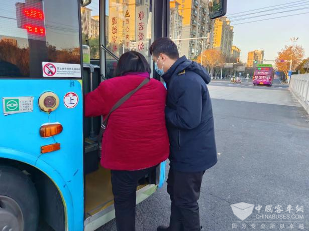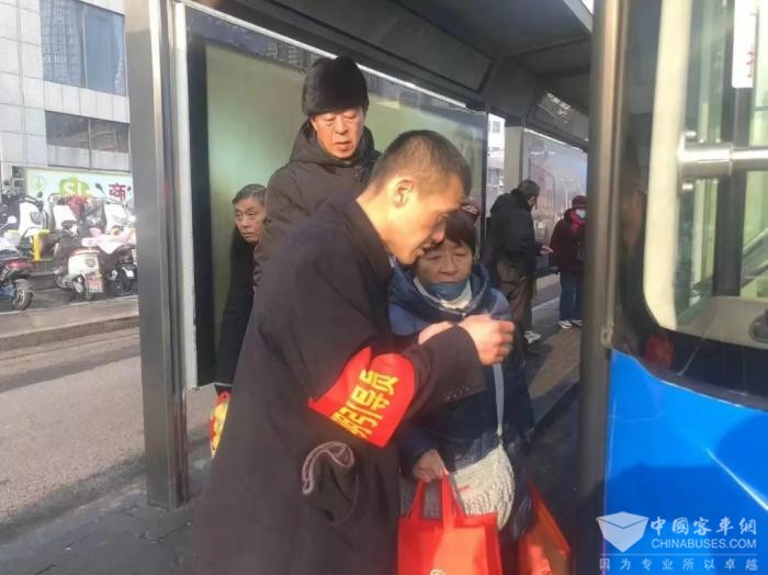 深入开展“幸福公交全龄友好6+1‘心’服务”,切实做到耐心等待上车、诚心礼貌问候、热心疏导让座、暖心坐稳启动、贴心到站提醒、细心观察下车+温馨全程服务。考虑返乡人员行李较多出行不便,春运第一天,公交党员、退役军人、团员志愿者们就已到岗履职,深入重要交通枢纽和客流较大的公交站点,开展志愿服务活动,维持站台候车秩序、引导乘客有序上下车、帮助乘客提供力所能及的帮助、解答乘客出行咨询等,全力为市民提供“出行便、安全保、服务优、感觉美”的幸福公交高品质服务。