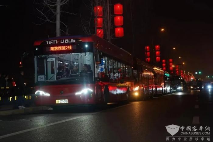 除夕当日,成都公交“天府之檐”活动保障专班工作组,增加T1、T7、T100等5条常规公交线路活动时段运力投放,缩短发车间隔至10分钟/班;开行环主会场、大悦城-兴隆湖2条接驳线路,运送近4000人次。