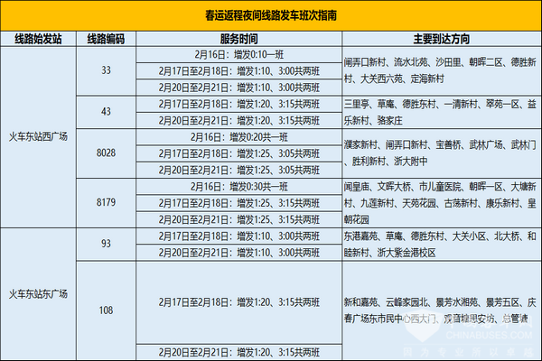 此外,杭州公交根据杭州东站、杭州南站以及杭州站三个车站加班列车的到达时刻,将推出“橙意暖巴”服务,为乘客夜间到站后提供暖心公交出行服务。