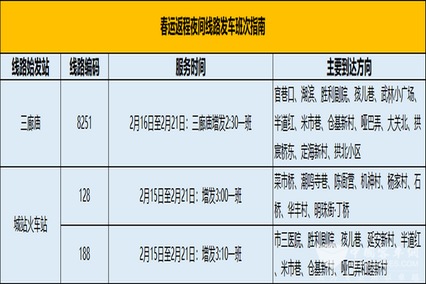 针对凌晨抵达杭州城站的旅客,自2月15日起,杭州公交将加密3条线路发车班次。