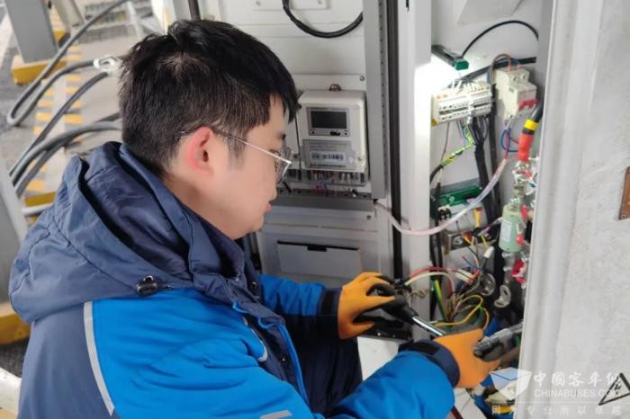 现代交通公司加强新能源车辆充电管理和巡查检查力度,及时处理各项突发情况,为公交正常运营提供优质供电保障。