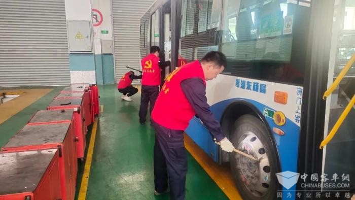 面对春节假期后紧接而上的工作日和开学季营运高峰,修理分公司党支部充分发挥“匠心领创”党建品牌作用,于年初五起至初八,安排党员骨干携各车间工作专班开展“车况检修保营运”主题党日活动,对长时间停运的车辆开展性能及安全检查,全方位保障车辆安全营运。为了确保检查工作的准确性和全面性,检查人员专门制作车辆信息表和检查内容明细表,从细节入手,逐一检查车辆的机械部件、制动系统、灯光、轮胎以及车辆内部各类设施设备,一旦发现问题,立即进行修复,从而确保每一辆公交车都处于良好的运行状态。此外,在开学首日的早出场,修理分公司党支部专门在各公交停保场设立“党员先锋岗”,为早出场公交营运车辆车况突发情况进行快速维修,确保营运正常有序。