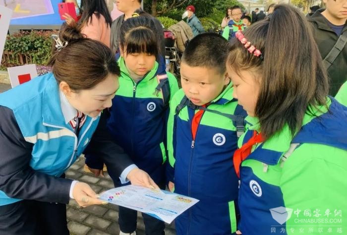 巴士四公司六车队青年志愿者向学生发放“开学季安全乘车小贴士”,普及交通安全知识,公交志愿者们用贴心的引导、暖心的服务保障着学子安全出行,得到了现场交警和学生家长一致好评。
