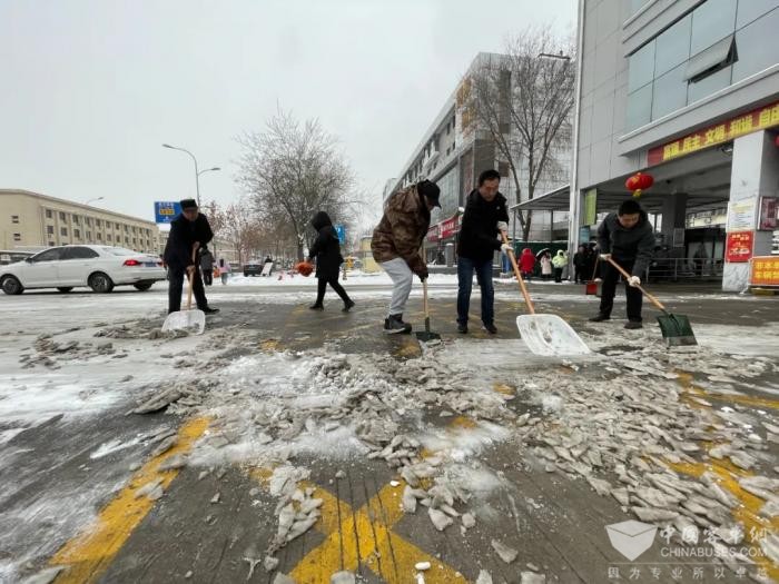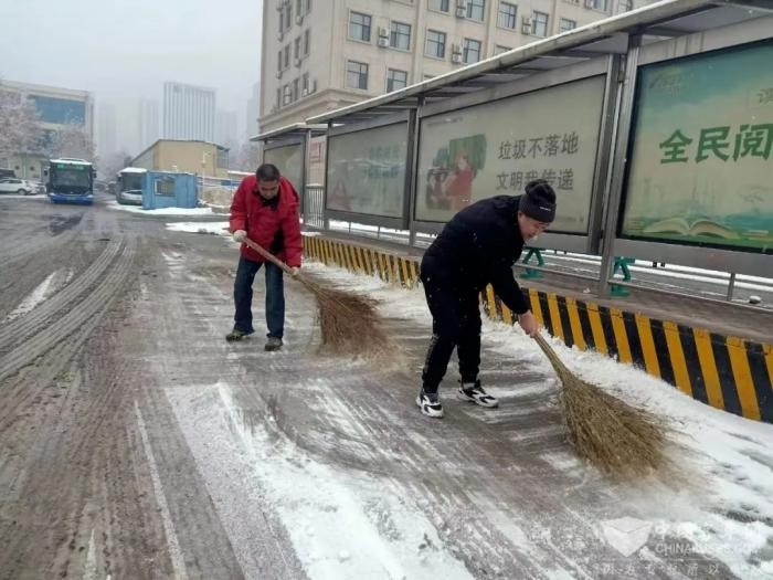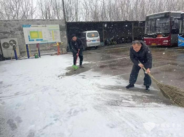 市公交集团第五分公司第一时间组织各路队对线路沿线站台开展扫雪工作,并对充电桩和停车区域进行了清理,保障运营车辆正常充电和停放安全,为一线运营做好后勤保障工作。
