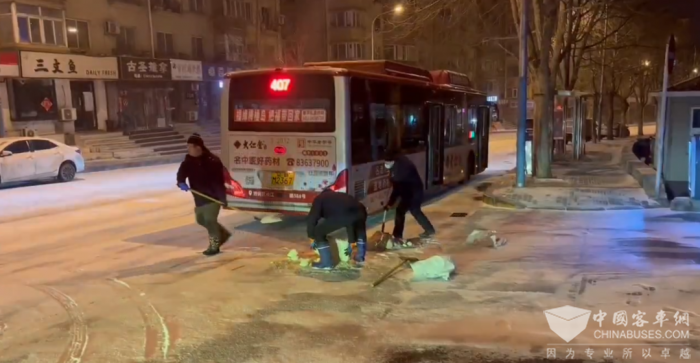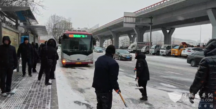 2024年2月21日凌晨3点左右,降雪开始,部分路段陆续出现积雪、结冰道路易滑状况,公交集团积极应对,第一时间启动除雪防滑应急预案,对各线路途径的坡路、弯路、站台等区域开展除雪防滑工作,确保线路有序运行。同时,通过智能调度监控和指挥系统时时关注线路运行情况,提醒在线运营驾驶员控制车速,安全行车。