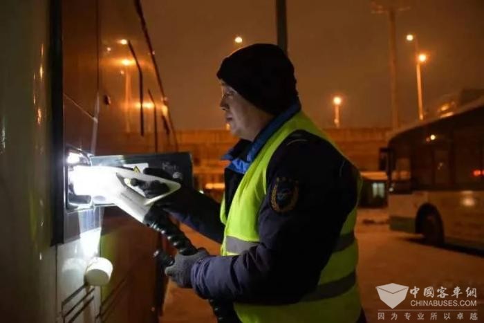 每一个流程都不能马虎,为了确保充电正常,龚旋每隔半个小时就要检查一遍充电桩是否在正常运行,充完电车辆关闭总电源及门窗,期间还在场站内巡检车辆。龚旋一晚上在场站内大概要走三万步。“到了凌晨下半夜的时候最容易犯困,在这种冰雪寒冷季节,犯困的时候就在场站巡检,确保充电安全的同时,吹一下风也有助于提神。”龚旋说。