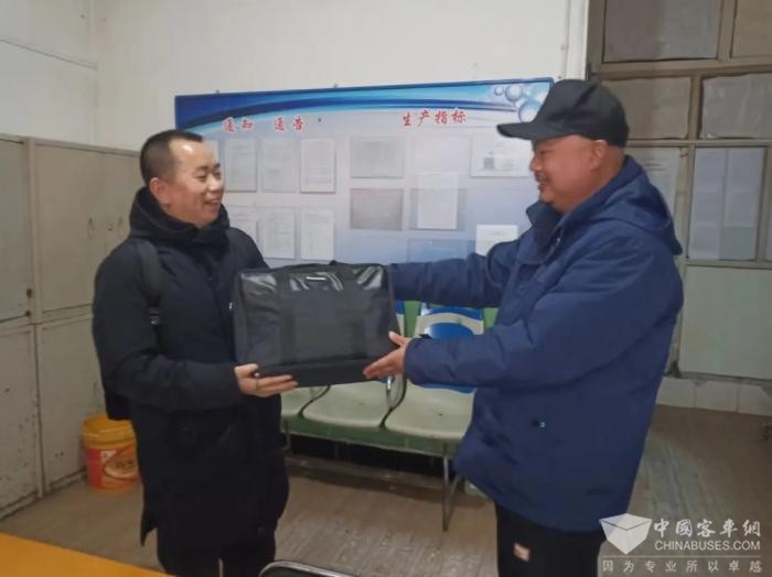 2024年2月28日下午14时25分,63路车长秦冬冬驾驶营运车辆回到白佛终点站后,发现在最后排座位上放着一个黑色手提包,由于找不到失主,便将包交到了站务杨静的手中,二人打开一看是台投影仪。30分钟后一位男士急匆匆来到站务室寻找丢失的投影仪。经核实,男士描述的投影仪与捡到的完全吻合,秦冬冬立即将物品归还。