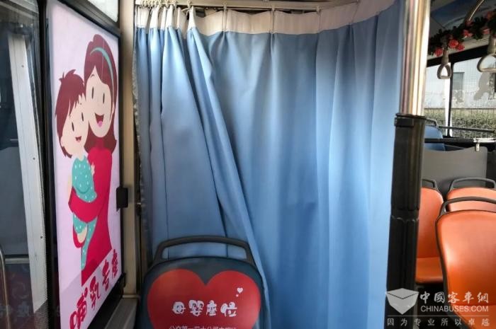 车厢内设有哺乳专座,座位上方有蓝色可拉窗帘,使用时拉上帘子即可形成一个相对独立的小包厢,能为哺乳期的妈妈提供方便。便民袋、哺乳专座进车厢这些特色服务也让16路巾帼线更加与众不同。