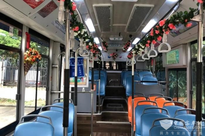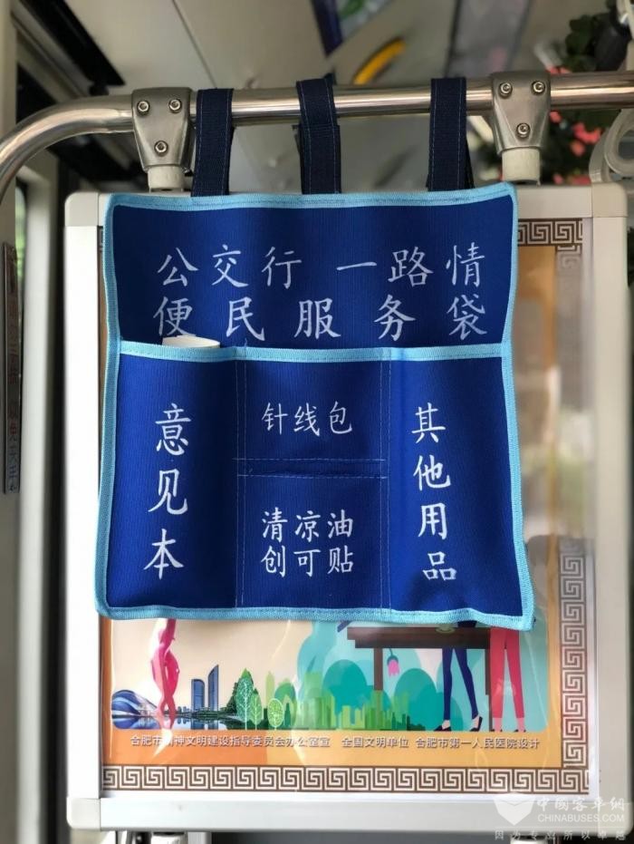 整洁的车厢,温馨的环境,只要你坐上16路公交车,你一定会被车厢内的装饰所吸引。车厢中排座椅旁悬挂了一个“便民服务袋”,便民袋上有四个口袋,分别装有意见簿、针线包、清凉油创可贴、其他物品等,为乘客提供方便。同时在上客门处,贴上迎客语,给乘客宾至如归的感觉。
