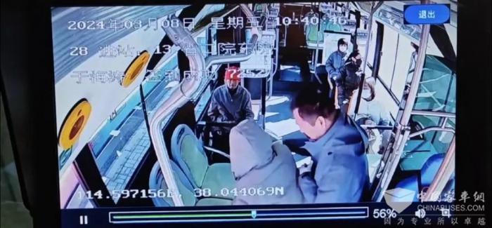 据了解,事情发生在2024年3月8日10时40分左右,记者通过公交车上监控视频看到了当时发生的一幕。当天,车长于海涛驾驶28路公交车行驶至省二院东院站时,一位老先生推着一位坐着轮椅的老大妈准备从前门上车。看到坐轮椅的老大妈腿脚不便,于海涛立即解开安全带,从驾驶室内出去,搀扶老人上车并安排好座位。之后,他又下车帮助老先生将轮椅抬上车。安顿好二人并询问在哪站下车后,于海涛叮嘱老人不要着急,到站时他会扶两人下车。
