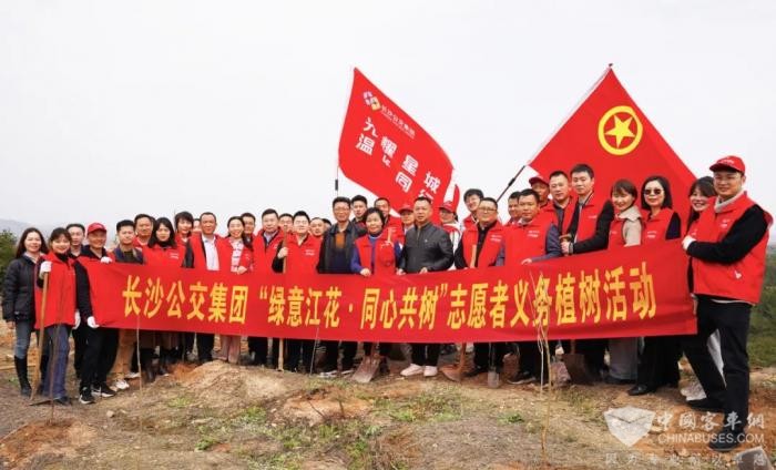长沙公交开展“绿意江花 同心共‘树’”主题志愿者义务植树活动