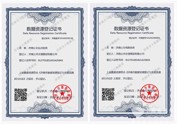 2023年8月,济南公交就着手开展数据资源入表准备工作,2024年1月1日《企业数据资源相关会计处理暂行规定》正式施行,在济南市大数据局、市国资委、市财政局的共同指导下,济南公交先行先试、勇于探索,率先将“济南公交站点信息”在济南市大数据局完成确权登记备案,取得济南市“001号”数据资源登记证书。