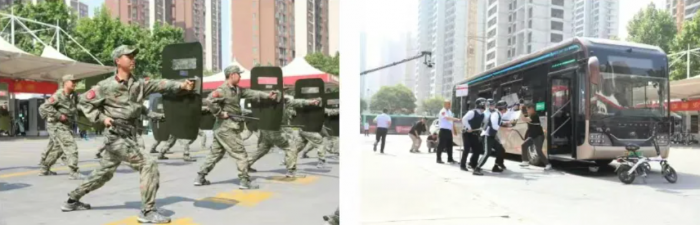 此次演练共有九个科目,分别模拟了民兵警棍盾牌操和防暴队形、公交车运营途中堵截三品及折叠式电动自行车上车应急处置、恶劣天气应急处置、公交车行驶途中发生交通事故处置、冰雪天气的应急处置、办公楼突发火险应急疏散、防汛应急救援、公交车涉水应急演练、高铁站大量聚集人群疏散等内容。现场演练科目皆是根据历年来公交行业所遇到的实际突发情况而科学设置,突出实战应对,多角度、多场景演示突发应对全流程,既是场景模拟,又是处置范例。过程中,参演队员沉着冷静、训练有素,动作规范,展现了良好的精神风貌,达到了演练的预期成效。