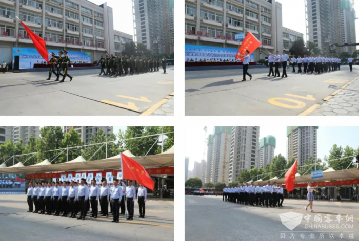 活动现场各参演方队精神抖擞,整装待发。随着一声令下,演练正式拉开帷幕。伴随着激越的行进曲,大家踏着整齐的步伐、喊着嘹亮的口号,依次进行队列展示后在指定区域集合。