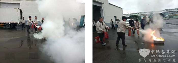会后在集团院内开展消防安全应急演练活动。此次应急演练共有2个演练科目,分别模拟火情灭火演练、公交车内起火突发事件的应急处置。通过实际演练操作,完成“停车、疏散、救援、报警”的公交车突发情况处置流程,进一步提高驾驶员应急处置能力,有效提升全体干部职工的安全意识和防范能力,为市民打造“出行便、安全保、服务优”的乘车环境。