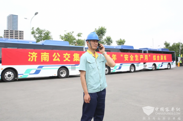 2024年6月是第23个全国“安全生产月”,为认真贯彻“人人讲安全,个个会应急——畅通生命通道”主题,落实市委、市政府及市城乡交通运输局关于加强公共交通安全生产工作的各项工作要求,消除安全隐患、筑牢安全防线,提高企业应急管理水平和全体职工的应急处置和紧急避险能力,2024年6月4日上午,全市交通运输系统“安全生产月”启动活动暨济南公交集团综合应急演练在韩仓公交停车场举行。