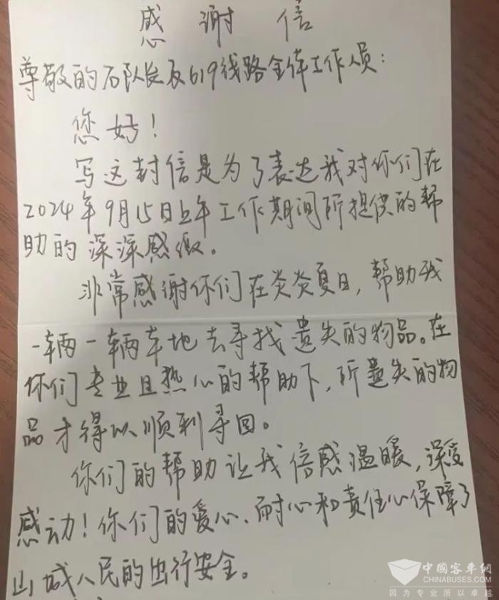 “每次乘坐619的时候,都能感受到重庆公交司机的人情味!”近日,西南政法大学经济法学在读博士生朱俊达不停点赞重庆司机。前几天,朱俊达乘坐619路公交车时不慎丢失耳机,幸好在公交工作人员的耐心帮助下才最终寻回,为此,朱俊达特地手写了一封感谢信,感谢他经常乘坐的这班公交线……