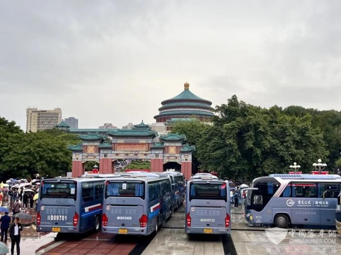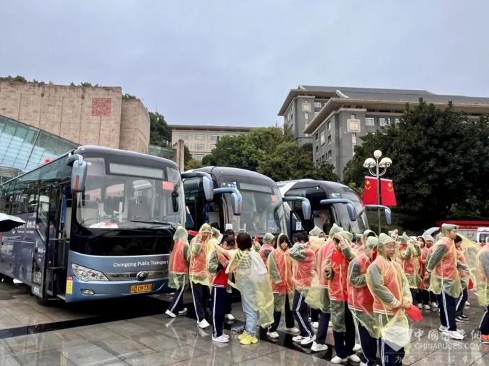 10月1日,13台定制公交为重庆红光中学600名师生前往重庆人民广场参加升国旗仪式提供“点对点”定制出行服务;