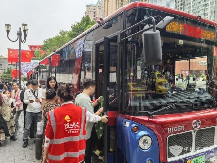 国庆期间,重庆公交在中心城区开行了3条公交假日快线,覆盖渝中区、南岸区、沙坪坝区等地区的热门商圈、景点,满足了游客在各景点之间快速通行的需求。